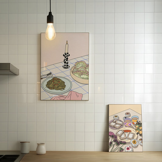 Spaghetti Dinner Illustrated Print