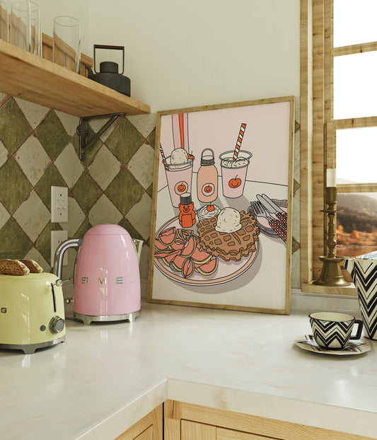 Waffle Breakfast Illustrated Print