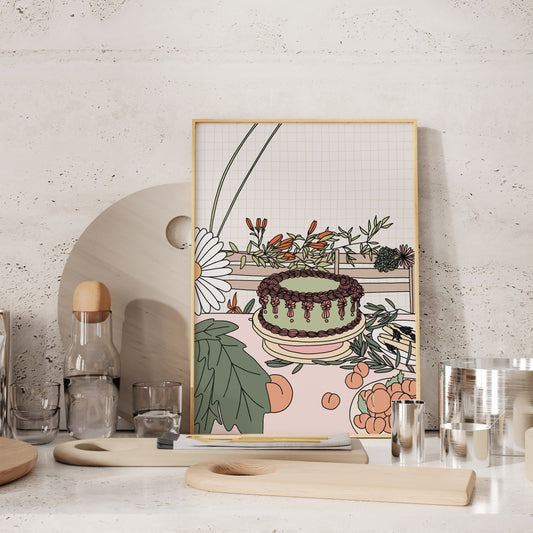 Cake and Peaches Illustrated Print