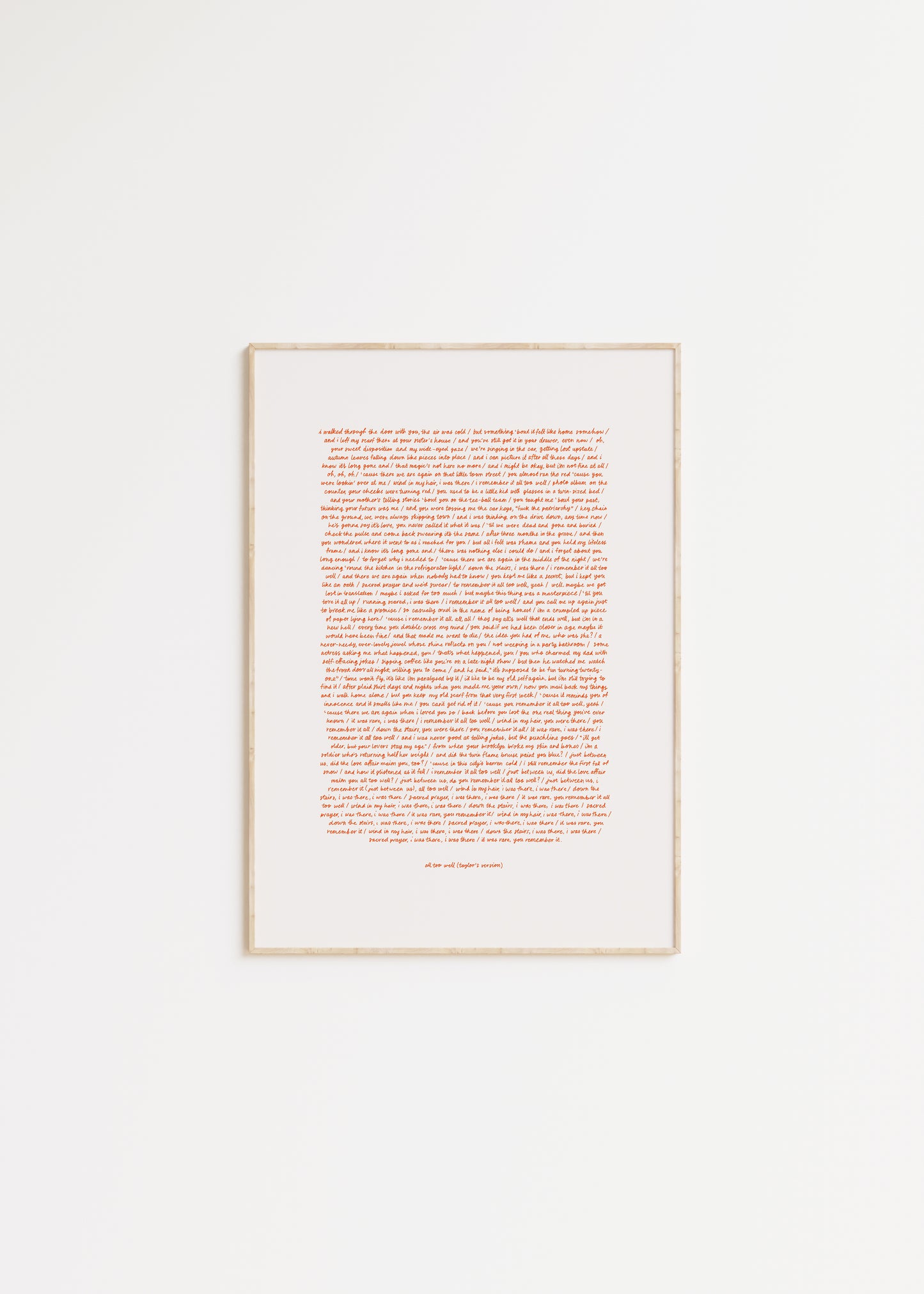 All too well (Taylor's version) lyric print.